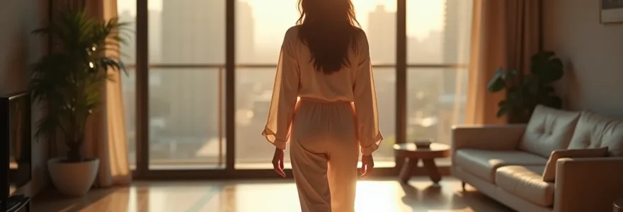 Le principe de polyvalence guide cette refondation. Plutôt que d’accumuler vingt pièces mono-usage, investir dans 5 à 7 éléments hybrides transforme radicalement le quotidien vestimentaire. Une chemise pyjama en soie peut se porter seule sur un jean pour un déjeuner décontracté, constituer le haut d’un ensemble complet pour une soirée à la maison, ou se glisser sous un blazer pour une journée de télétravail. Un pantalon fluide en lin structuré navigue entre le confort domestique et la tenue de ville. Un kimono long en coton noble devient surchemise d’extérieur ou veste d’intérieur selon le contexte.